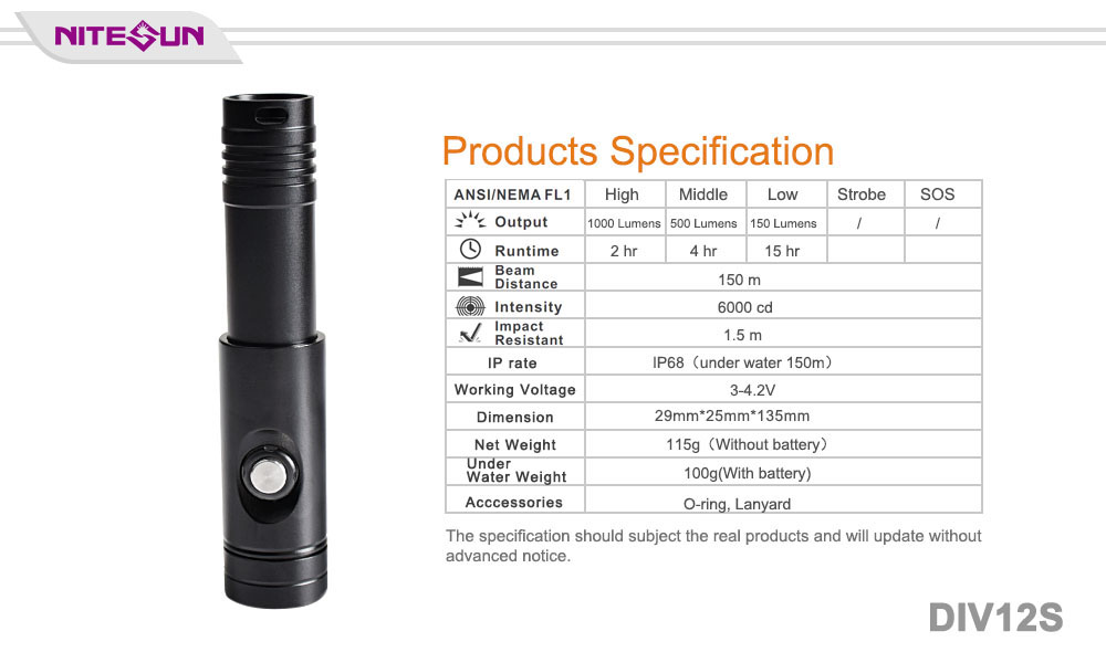 Super Bright: Utilize high-quality CREE XM-L2(U4) LED with over 50,000 hours lifespan. The maximum output can be up to 1050 lumens, giving you super bright white light under the water
