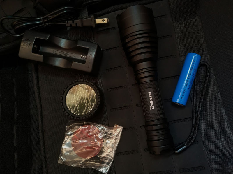 因为其多样场景适用的原因,其配件方面也是较为丰富的。此次我的选择有红绿的滤镜以及充电器、18650电池。而一颗电池就能带来1000流明的亮度以及最长1800分钟的续航可说在市面上的诸多品牌的手电中极具竞争能力。