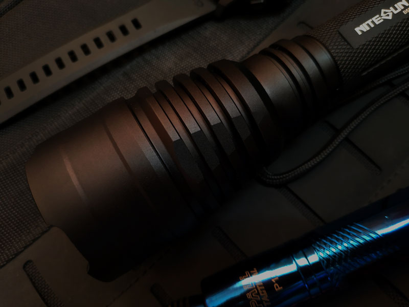 手电的筒头位置相较于筒身而言显得较大。这种“大头”的设计带来了各位深邃的光杯反射效果。简而言之就是具有更加长远的射程。