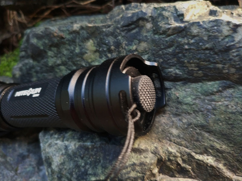 尾部内凹的且表面有极多凸点的位置是其按键位置的所在。内凹避免携带中的误触开启。而表面的凸点带来触感极佳的辨识效果,如此方便夜间做盲操作。当然,因为其设计位置的有效选择即便戴上手套也能在夜间做快速操作。