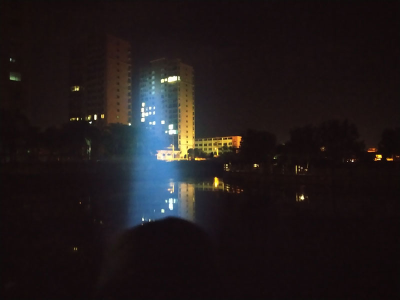 从其照射的效果来看,聚光性能极为突出,这是其大头带来的高效。射出的光束清晰、明亮。被照射的物体也是如此。