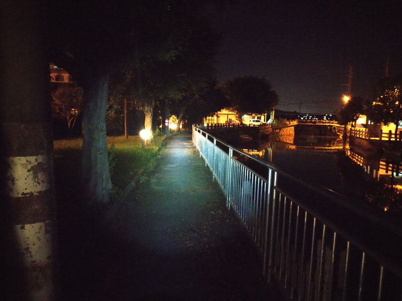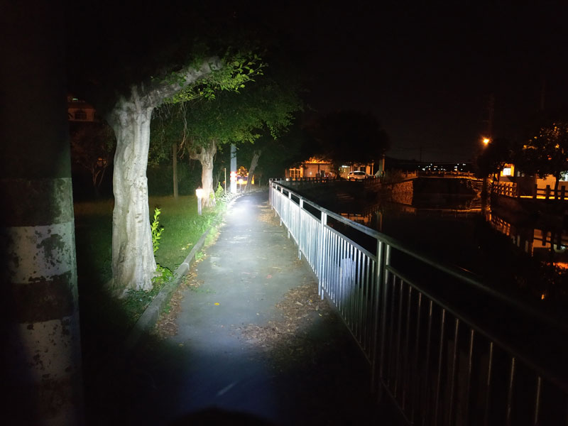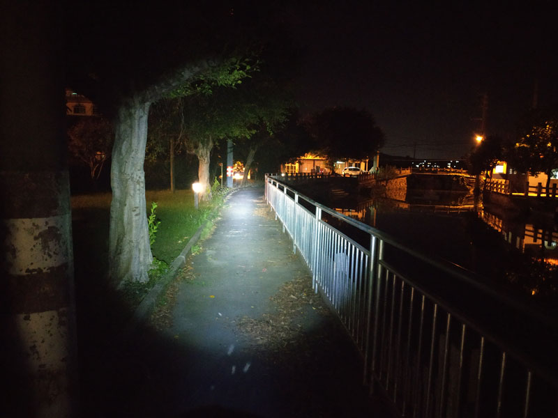 这是300流明的效果。对于亮度的切换,点按尾部按键就可完成。点按不放的时候该亮度一直做照射,当然此时直接重按就可以获得该亮度档位的常亮效果。因为尾键操作便利的缘故,单手操作也极为便利。
